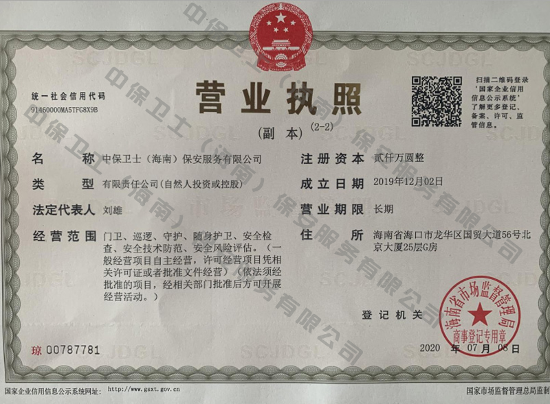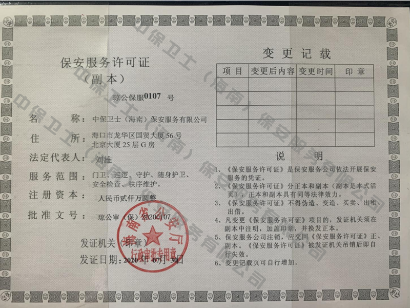 杏运注册登录站_杏运(中国)是经海南省公安厅批准,依法持有《保安服务许可证》,提供保安服务、门卫、巡逻、守护、区域秩序维护、随身护卫、安全检查的专业化保安服务公司。
